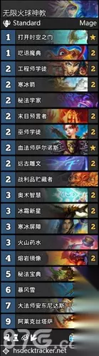 炉石传说无限火球任务法卡组深度解析 今天聊聊这套无限火球任务法卡组,最近在传说段位表现挺不错,胜率稳定在68%,帮我们冲上了传说。卡组思路简单,就是通过任务推进节奏,配合法术和随从打出控制,对付各种快攻卡组效果都不错。下面我们具体看看这套卡组的细节和实战心得。