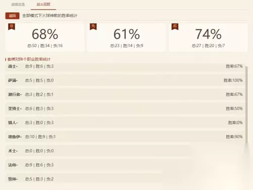 胜率图是最近50场的记录,不算全程数据,但总体胜率不到60%。猎人胜率创新低,约35%,主要是被[奥秘吞噬者]和[照明弹张杰]打得没脾气。法师胜率勉强过50%,但经常被张杰反打,现在环境确实挺恶劣。其他职业和上赛季差不多,主要还是张杰太烦人,近300场被制裁了至少15次,想冲传说的得注意心态。如果月末低保任务完成了,可以试试这套骚套路娱乐一下。 无限火球任务法对局分析 1 对付战士这赛季我们一律不留任务,因为任务战很少,而且任务战是慢速卡组,就算赌错也有机会抽到任务。只要任务不在最后5张,换掉问题不大。虽然偶尔会换错导致沉底,但整体胜率会提升。 2 对阵德鲁伊起手留不留任务要看具体情况。打快攻咆哮德时,应该换掉任务,因为对方节奏太快,红龙喷自己后你很难翻盘。但打青玉德时,还是应该留任务,因为青玉德速度更快,不留任务风险更大。牧师这类慢速卡组可以留任务,因为前期压力小,换掉未必能找到更好的牌。 3 面对萨满这赛季嗜血萨崛起,所以我们加入了火山药水。萨满主要分两波压力:第一波是5费嗜血威慑,火山药水能解掉第一阶段;第二波是6费魅影歹徒+进化combo,必须用冰环或暴风雪应对。打萨满时,拼比怂更稳妥,不能只考虑防守,要想着怎么赢。留不留任务要看对方强度,比如猎人和萨满这类能快速推进的,应该留任务。 4 冰法思路虽然现在不玩冰法,但这套卡组确实适合当前环境。干燥冰不怕有奶职业,打中快速时,前期能和快攻有来有回,顺的情况下通过怪站场就能踢掉对手很多血,不需要一直防守等红龙。一旦冰法处于主动,张杰就不那么有效了。无限火球怕张杰是因为卡组纯防守,容易被反打,但冰法主动权在己方,不给对方张杰的机会。目前天梯被中快速卡组统治,冰法几乎没有天敌,想玩的可以试试。 总结这套无限火球任务法卡组强度不错,适合当前环境,尤其克制快攻职业。实战中要注意调整策略,比如对付战士不留任务,打萨满留任务。虽然张杰横行,但冰法这类主动卡组依然有机会。如果月末有低保任务,可以试试这套骚套路娱乐一下。整体来说,卡组思路清晰,操作简单,适合大多数玩家。