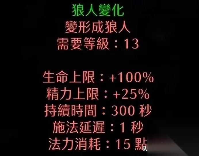 主要靠变身为狼人进行战斗。它的主要特点如下: 1),拥有很高的生命值和防御值,命中也很出色。 2),攻速极快,有点像是双热圣骑士,同时可以攻击周边四五个敌人,攻击也很高。 3),需要高的吸血和吸魔来维持输出。 4),和召唤系不冲突,两者可以同时加点,也就是说,德鲁伊在变身狼人战斗的时候也可以召唤很多生物来辅助战斗。究竟以召唤还是以变身狼人为主要输出,取决于玩家的喜好。