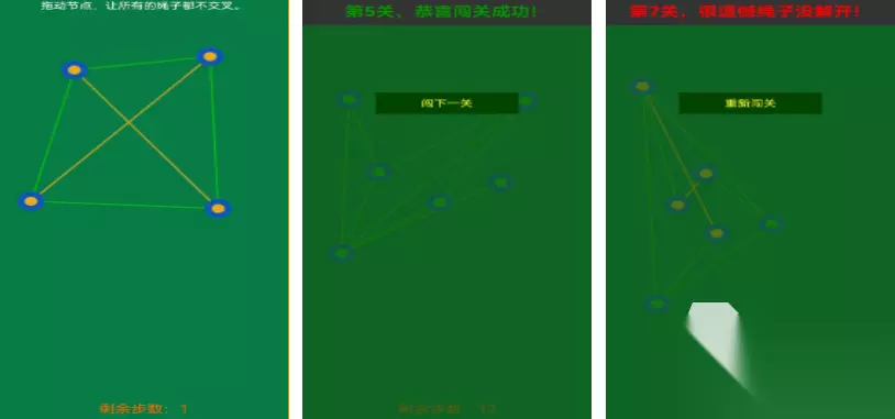 解开绳子是款画面风格很简约的解绳子手游,你需要用手指拖动不同的绳子节点,将绳结解开后不交叉就可以进入下一关,循序渐进的难度以及休闲自在的游戏方式让人沉浸其中,极具美感的画面设定让很多休闲游戏迷大呼过瘾,优秀的画面质量以及优美的音效让游戏的氛围更加放松,通过解开一个个绳结你也可以获得解压的快感。 高速下载 普通下载 优先233乐园APP下载 2、《解绳子》