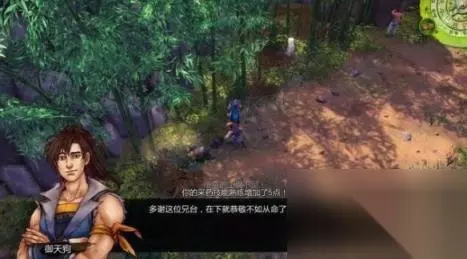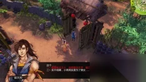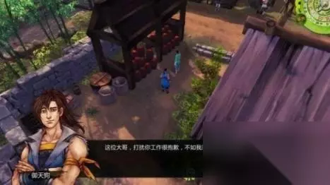 step2.前往村口北面的林道,会看见一只猴子在逃窜,应该是有什么可怕的东西吓到了它。 “你”开始畏惧了,而谷月轩则向“你”开玩笑称,他懂得武松打虎拳,自然不怕凶恶的大虫。然而步入洞中却发现只是一个装扮类似老虎的壮汉——喝,他喝醉了酒并且肆意袭击途人和动物。 为了给杜康村除害,就需要打败他。