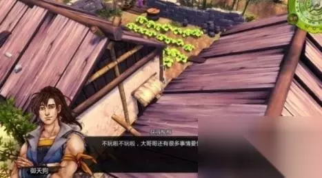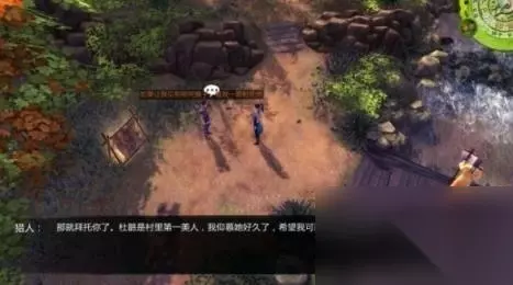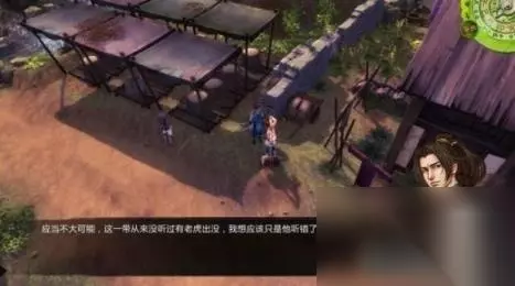 任务06:打老虎 奖励:无 step1.在村庄西面的酿米酒的棚架旁有一名樵夫,他告诉“你”和谷月轩林间岩穴有老虎出没,但谷月轩觉得不大可能,因为这附近并未有老虎曾出现过。