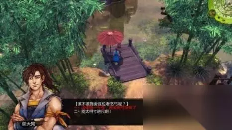 任务02:算命师傅 奖励:无 step1.算命师傅郭达初期会在杜康村村口,其余时候他会在杜康村内四处游走。 算命师傅郭达赞扬了谷月轩的侠义之举,并且他赠了“你”与谷月轩一首诗:“北冥乾坤逍遥游,三侠比肩笑红尘。狂龙翻海怒吞鹏,徘徊空谷声声叹。东方日曦尚未明,回首风雨飘摇路”。 谷月轩认为这是一番警告,而算命师傅郭达自己也未明诗中玄机,只能说是一切天意。然后郭达会把目光转向于“你”,他想知道“你”为何要与凶残之徒正面冲突,如果回答选项一“我辈侠义之人,自然路见不平拔刀相助!”,那么就能够增加5点道德。