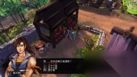 任务05:数酒瓮 奖励:悟性+3点、500钱 step1.在莊记美酒西面有一个陈放酒瓮的棚架,那儿有一名算酒人,但他数来数去都数不准。 那么“你”就提出帮忙。