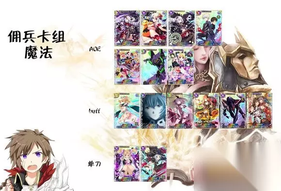 雇佣兵(魔法): A0E:歌剧大盗、灭夏橄榄石、00号部队、电波亚林、学徒腿石、秋腿、碇薰 Buff:法姐、果敢战士(慎用)、光教官、女神、白雪公主(慎用)、第九使徒 单剑:摩根大姐