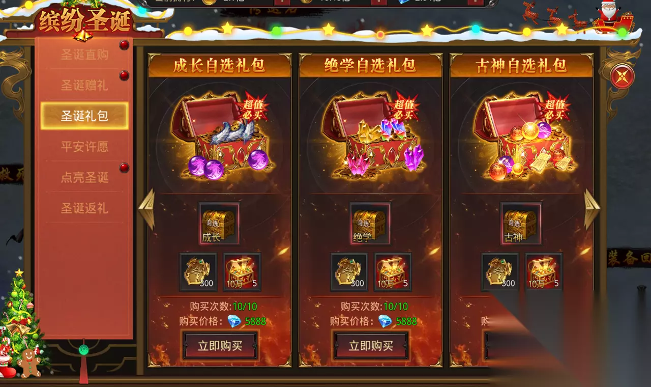 【圣诞礼包】 活动期间购买多个主题礼包,超值特惠自选奖励,助力各位勇士全面提升战力。