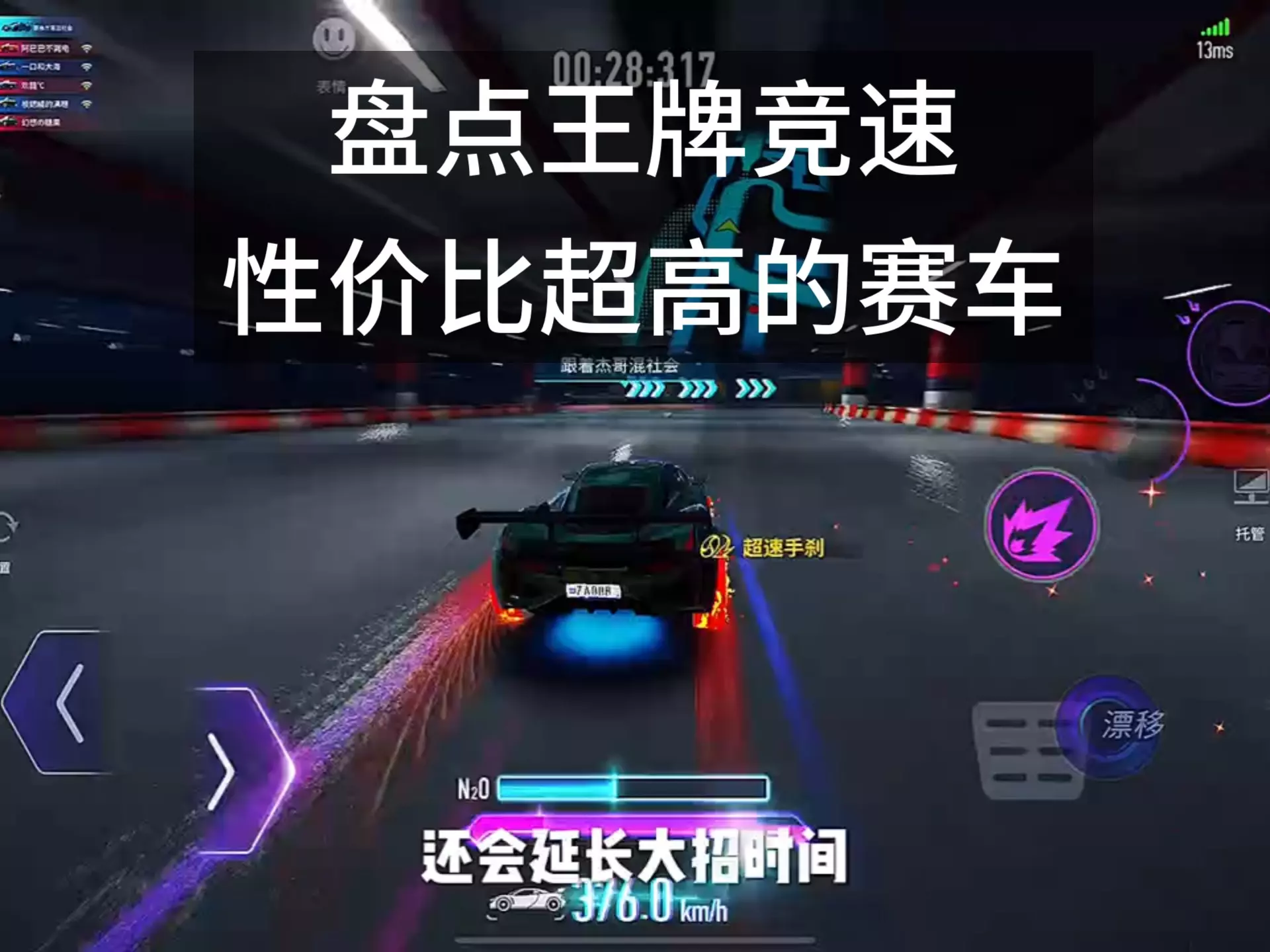 这是《王牌竞速》的游戏内容,玩家驾驶奥迪R8参与赛道竞速,展示了游戏内的漂移、竞速等操作,还发起挑战,称自己的奥迪R8速度全网领先,询问哪个主播能比自己更快。