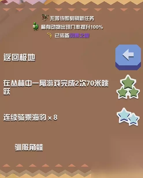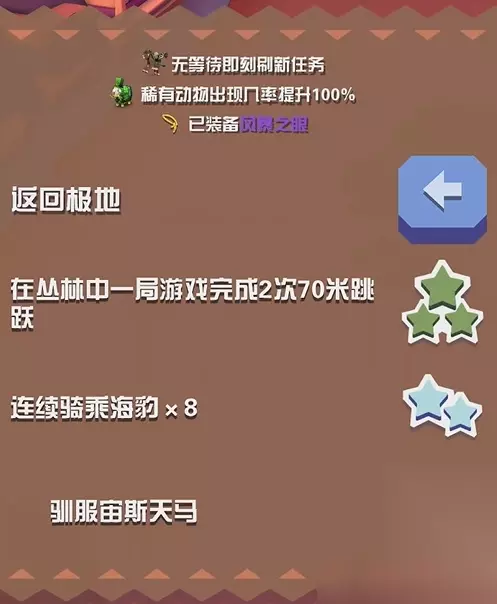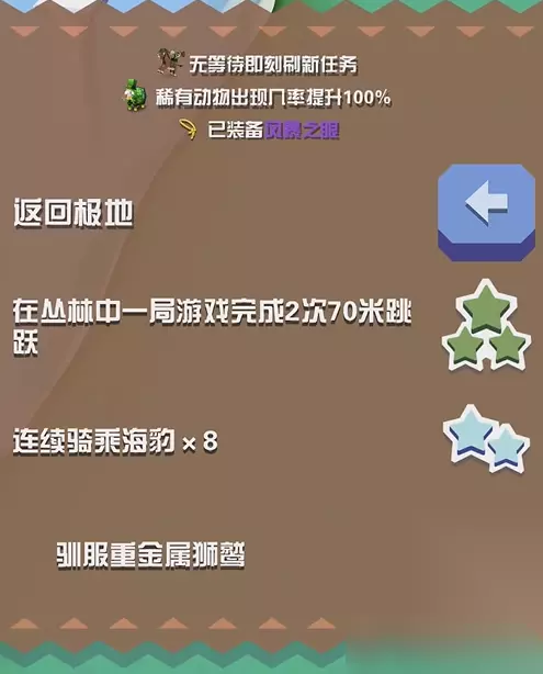 重金属狮鹫的获取方式相对特殊。玩家需要在游戏中完成特定的任务或条件才能遇到并捕捉它。 例如,骑同一只牝鹿跑1200米,或者在一局内用狮鹫吃三只凤凰等。 重金属狮鹫在游戏中的属性较为特殊。它虽然有翅膀,但不会飞行,只能在陆地上奔跑。