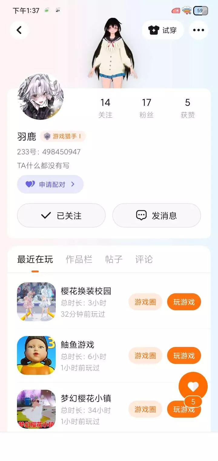 官宣妹妹@羽鹿 好可爱的小妹妹