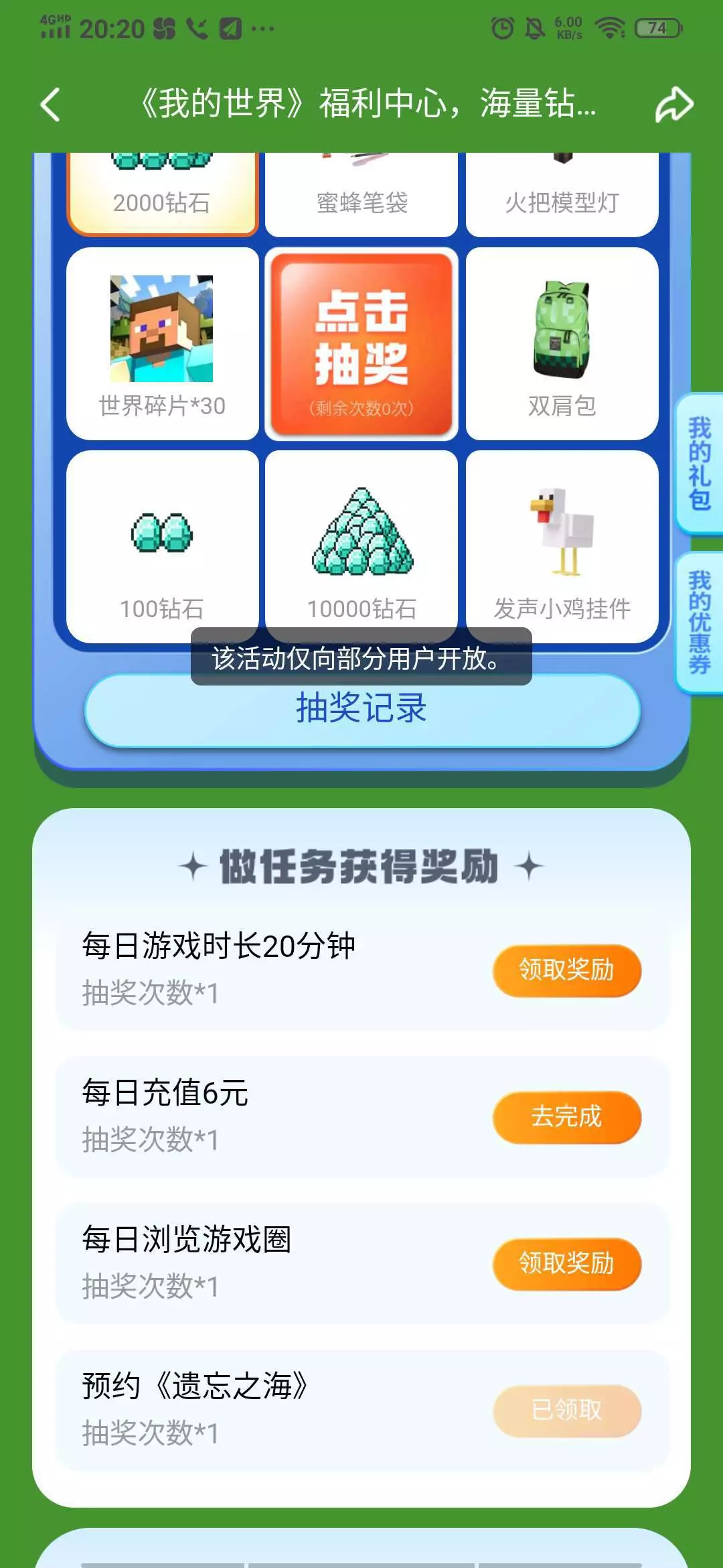 这个为什么领不了了?差一点就可以换钻石。