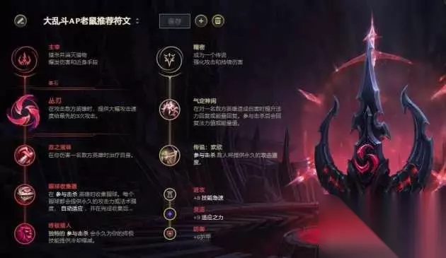 老鼠是大乱斗少有没有buff/debuff的ADC,说明老鼠在大乱斗正常玩法强度一直在线,不会过于变态。 12.19版本的加强给AP老鼠满额伤害至少提升了10%,刚好弥补之前所有英雄耐久度提升带来伤害不足的差距。 AP老鼠玩法是己方队伍缺乏AP伤害的补充。 毕竟被动真实伤害有AP加成,W减速效果也有AP加成。 6神装的AP老鼠一个W能让敌人走不动路,非常恶心。 【符文】 AP老鼠大乱斗符文分享