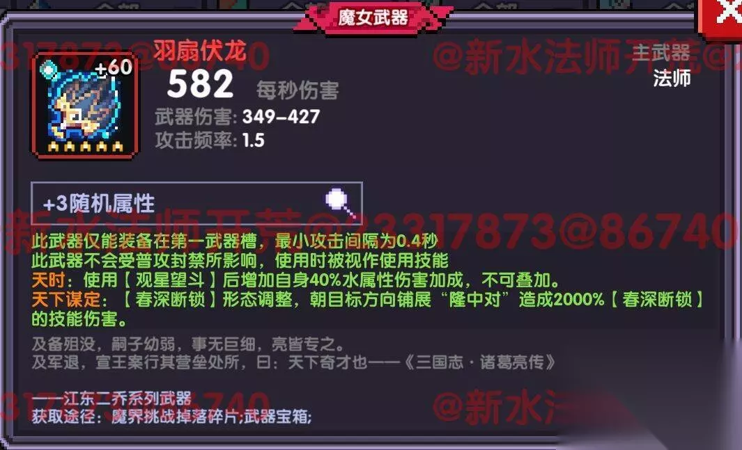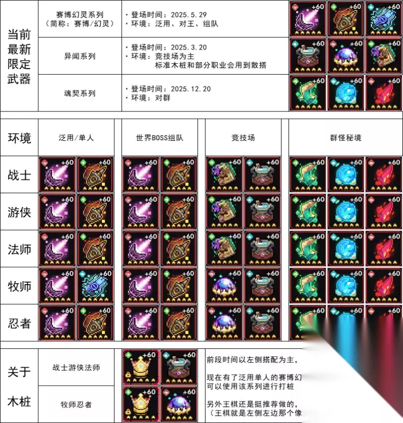 当时的装备以及属性参考: