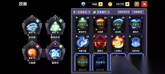 江东二乔职业技能位【春深断锁】【观星望斗】 享受新版本福利的玩家已经完成了技能获取,错过的玩家可以考虑之前说的魔女臻藏兑换,或者技能池抽取。 增益技能我们正常通用选择【元素之智】+【龙咆虎啸】即可 【元素之智】:普通技能,容易获得,在百层流程中已经获得 【龙炮虎啸】:①刷新商店/商店钻石购买;②技巧试炼-木系概率掉落;③命运书卷Ⅱ概率抽取 符文篇 大符文(核心)