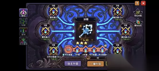 更换装备后,可以去铁匠铺给装备属性洗一下,主要洗胸甲-暴击值,项链/戒指/鞋子-护甲穿透 这个时候,你的符文能量应该能达到400解锁冰姬符文的第二段增益。 69-70层 这两关难度会偏高一点,当然我们也可以一定程度上控制一下跳关层数,使当前关为69时候,我们打60秒通过69层就能跳过70层 【70层】冲层大礼包给予:传说技能典籍×1+史诗技能典籍×1+大师卷轴自选×5。这个就是用来升级新水技能的,提升技能等级可以有效提升伤害。 即如图,