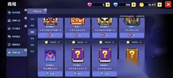 ⑥【0氪推荐】在【商城】的所有礼包-技能里面,买【传说技能自选包】(600钻石,最稳定);