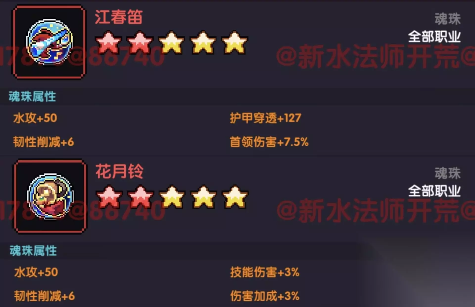 新手期洗练: 首领伤害+护甲穿透+暴击值 中后期: 首领秘境洗练:首领伤害+护甲穿透+水攻 群怪秘境/竞技场洗练:护甲穿透+水攻+攻击强度 世界专属洗练:首领伤害+水攻+攻击强度(非资深玩家,直接用首领秘境即可) 同样的,多余重复的武器先分解拿碎片(前期留一把升武器就行,等中后期资源丰富了再考虑多把的事情)。 武器魂珠: