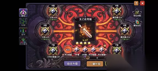 然后,在符文核心页面,选择自主升级,将等级调整为图示等级,这样,我们吃到了800能量增益