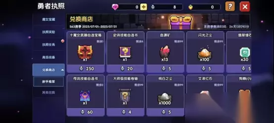 ④【氪金玩家,但不推荐】在【商城】的新手超值里面,买【初见传说技能自选】(12元); ⑤【氪金玩家,相对推荐】通过50层小秘境后,解锁勇者执照,可以购入,20普通执照币买紫色技能书,60买橙色技能书;