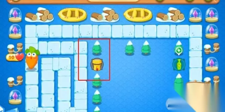 4、将月亮炮塔和手电筒炮塔附近的道具清除掉后 会获取一个免费的瓶子炮塔,然后清除附近的道具。