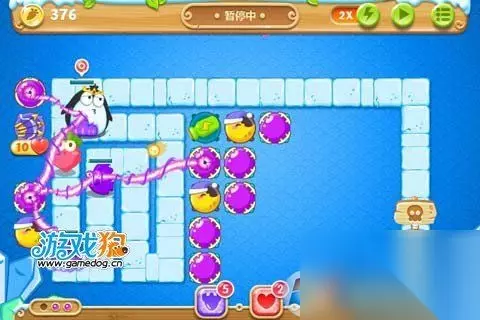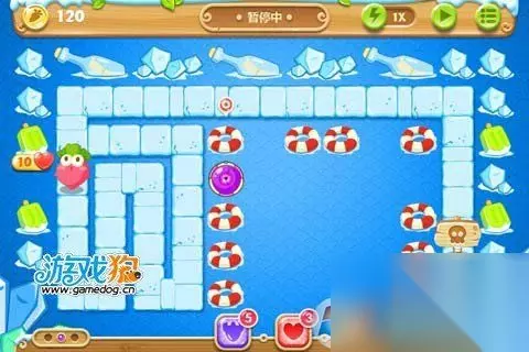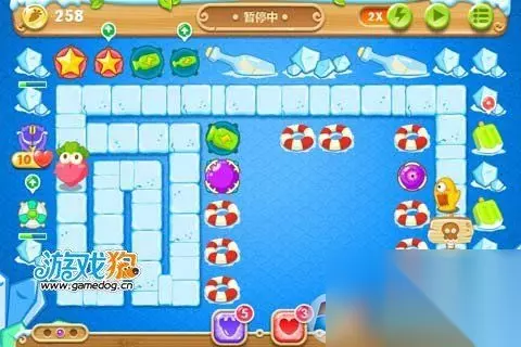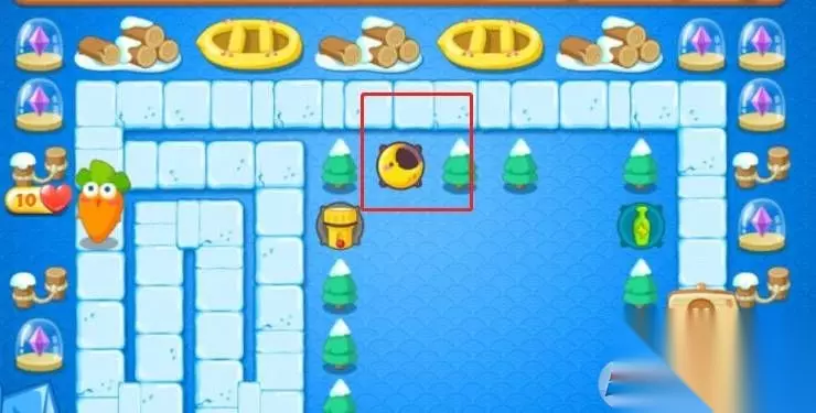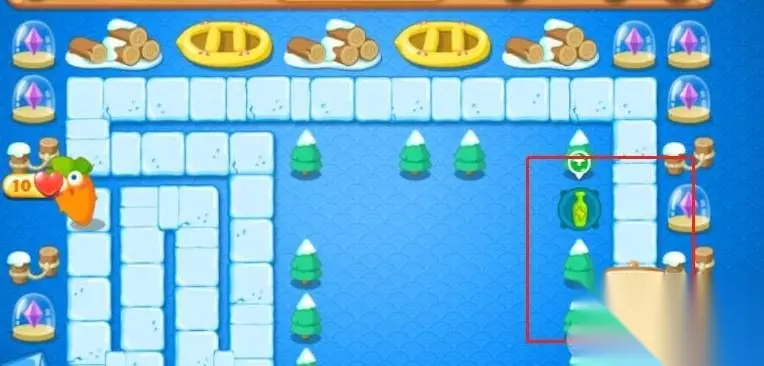 左边两个绿色冰棍打掉以后右边放个魔法球开始打右边的绿色冰棍了。