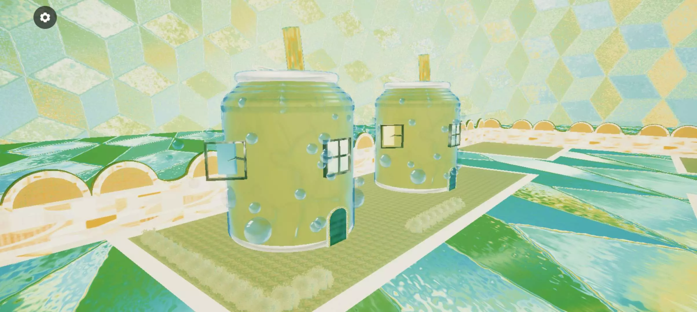 建筑风格贴近居民社区,周边环绕着城墙与草坪🌿房屋外观独具特色,仿若青柠汽水。周身萦绕着晶莹的水气泡🫧⑉⑉.宛如刚从清凉水中捞出的饮料罐一般清新灵动!