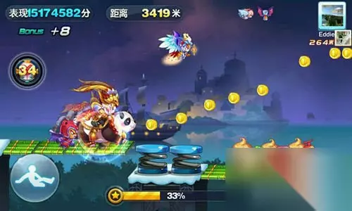 天天酷跑九尾狐仙 1、角色共有9个元神,复活消耗3个元神 2、使用技能消耗1个元神补充一个限时护盾,召唤富贵狸 3、使用技能消耗元神,元神数量越少,表现分越高 大圣炫装