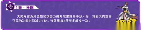 不管是攻击力提升效果或者命中敌人后,天狗雷咒的冷却时间减少1S,让技能轮换加快,加快下一次提升攻击力的时间。