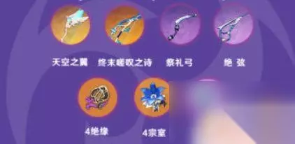 在Buff状态的下的角色,雷元素伤害的暴击伤害提高60%,可以使雷系角色输出大大增加,但是时间还是硬伤,仅仅享受6S的加成。 武器 【乌羽】提供的攻击力加成是基于九条的基础攻击力,所以我们首选白值高一些的弓箭武器。优先高白值的五星武器,目前功能比较全面的就是【终末嗟叹之诗】,也可以次选择高白值的四星弓箭武器——可以增加九条输出能力的【暗巷猎手】或词条带有充能效率的【祭礼弓】(同为565面板,祭礼弓的刷新元素战技效果对九条作用不是很大,请根据自身需求选择),也可牺牲一部分面板选择【西风猎弓】来提升整个队伍的能量循环速度。