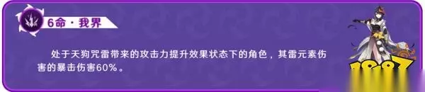 角色定位 对于定位玩法方面,毕竟是辅助型角色,基本有技能放技能,爆发的同时,增加攻击力依旧是是她的主要作用,没有六命的她是增加攻击力类型的班尼特的下位,在六命的情况下,则是外加为雷系增加60%暴击伤害,所以也就更加倾向于双雷的组队方向让她作用最大化。 技能天赋