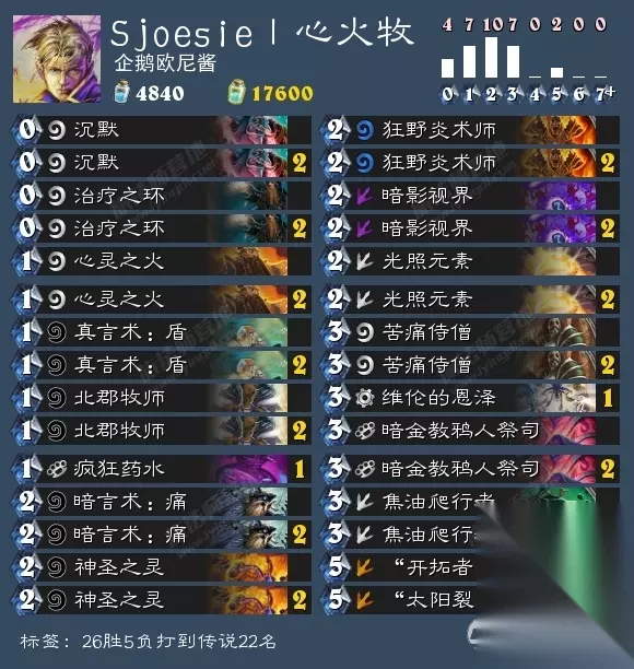 天梯强度:★★★★☆ 操作难度:★★★☆ 娱乐效果:★★★ 卡组讲解:心火牧在狂野模式也能有效生存,由于环境所需,需要卡组费用降低来防止前期不卡手,成功度过前期。任何小生物在加上维纶的恩泽之后都是很有效的站场手段,而且这套牌的小生物都是功能牌或者可以过牌的卡牌 【其他卡组】
