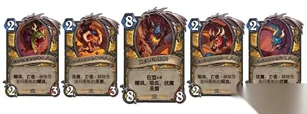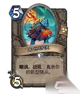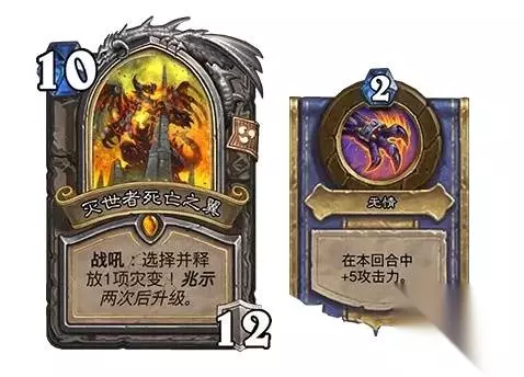 死亡之翼的仆从们预示着灭世者及其巨型爪牙的降临,而兆示关键词则通过两种关键方式体验这一点。首先,当你使用带有兆示关键词的卡牌时,会召唤一个与该职业对应的巨型随从的士兵。这些士兵拥有与巨型随从衍生物想通的能力。巨型随从通常因法力值消耗较高在对局后期登场,这些召唤的士兵能提前动用它们的力量,让对手率先亲身体验毁灭之兆。
