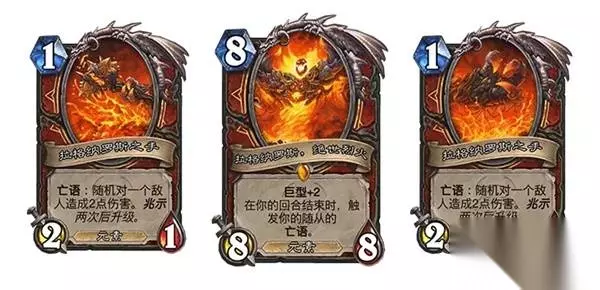 但一次灾变怎么够摧毁世界?你在对局中使用新关键词“兆示”的次数越多,变身为死亡之翼时触发的大灾变效果就越多!我们将在下文中详细解释兆示的运作方式。 在即将开启的“大地的裂变”抢先体验乱斗中,你就能试用“灭世者死亡之翼”英雄牌!抢先体验乱斗将于北京时间3月11日凌晨1:00至3月18日凌晨0:00开放。查看34.6补丁说明,了解更多详情。 你的巨型随从,升了又升 巨型随从体型惊人!这一机制首次亮相于“探寻沉没之城”扩展包中,用于呈现规模庞大、威势逼人的存在,因此也成为了塑造死亡之翼麾下副官(如拉格纳罗斯与艾萨拉)的绝佳方式。当巨型随从登场时,它们会在战场上舒展躯体,以巨大手臂、额外头颅或扭曲触手的衍生物占据多个战场空位。这些衍生物拥有与主随从相关的能力,共同展现出排山倒海般的压迫力。 在“大地的裂变”中,所有职业都将获得一张全新的传说巨型随从卡牌。全新的“兆示”关键词与死亡之翼的降临紧密相连,因此只有追随他的六个职业能从中获益:死亡骑士、恶魔猎手、潜行者、萨满祭司、术士和战士。 快来瞧瞧战士的巨型随从:拉格纳罗斯,绝世烈火