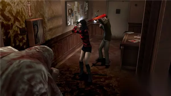 派对之夜:Kenny与Amy的遭遇 与此同时,另一边的Kenny和Amy正赶往Delta Gamma Theta学园,他们计划参加一场盛大的派对。 Amy兴奋地说:“希望今晚能遇到帅哥!” Kenny调侃道:“难道我不是帅哥吗?” Amy笑着摇头:“你只是朋友。” 两人来到派对地点,尝试正门进入,却被拒之门外。无奈之下,他们绕到房屋后方,Kenny找到一根高尔夫球棒,并利用一个大木箱搭建通道,顺利爬上二楼。进入建筑后,整个房屋笼罩在不祥的气息中。 大厅内,黑色瘴气正从地板缝隙中渗出。花的孢子在空气中弥漫,惊恐的学生们尖叫四散。Amy最初以为是大家玩得太过火,但Kenny敏锐地察觉到,这与两年前的Leafmore学园事件如出一辙。 在房间的一角,Kenny找到了一张纸条,上面写着保险箱的密码“1873”。 此时,一名肩膀受伤的女学生摇摇晃晃地靠在门上,气息微弱地说道:“快……去保险箱……拿枪……” Kenny与Amy迅速行动,回到保险箱前输入密码,取出枪械。正当他们准备迎战,房屋内的怪物们已然开始蠢蠢欲动。
