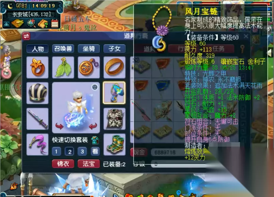 生存能力方面,金甲仙衣是必带的防御型法宝。木属性的金甲仙衣能触发更高概率的神兵保护,在受到物理攻击时有效降低所受伤害。除了输出和生存,功能性法宝能进一步拓展大唐的战术空间。风袋以水属性为最优,佩戴后提升人物速度,适合需要抢物理一速的PK场景。七宝玲珑灯则是团队辅助的利器,水属性下解除异常状态的概率更高,可主动为队友解除封印、中毒等负面效果。