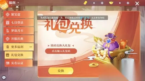 怎么兑换礼包码? 1、首先我们进入游戏主界面,找到“福利”功能进行兑换。 2、然后点击下方的更对福利,点开选择礼包兑换。 3、然后输入正确有效的礼包码就可以进行兑换了。