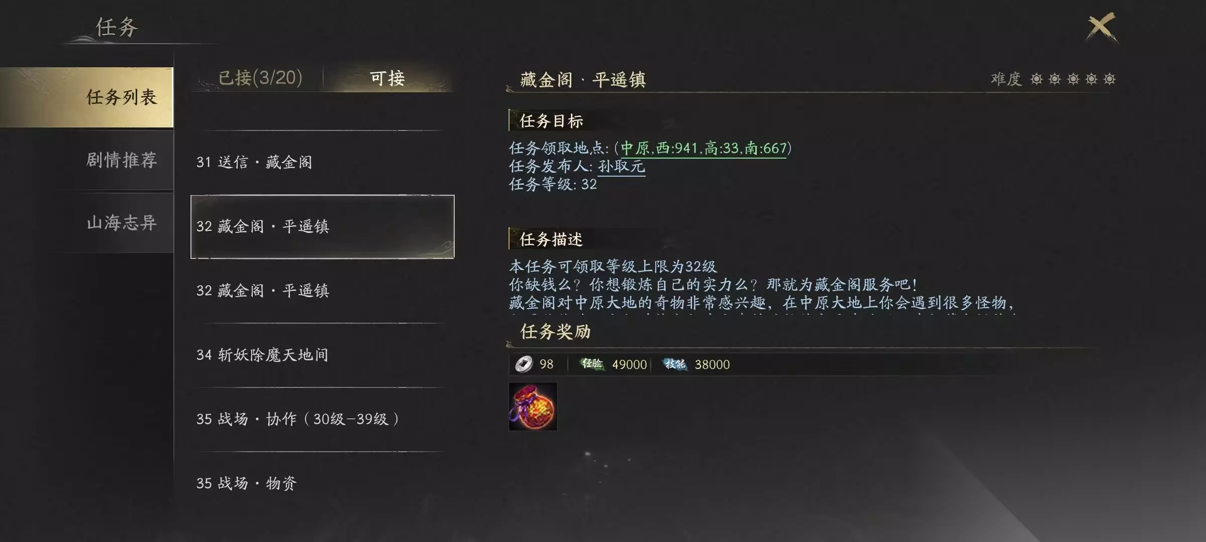 【王朝战备】由王朝战备官发布,面向达标的玩家开启。任务类型分为“募集半成品”与“募集成品”两类,完成后可累积王朝战备声望,并用于在战备官处兑换实用道具或限定称谓,是长期培养阵营归属感的核心日常之一。 【藏金阁任务】角色等级超过30级即可接取,共设多个地域分支,每类任务每周可完成两次。玩家需根据指引前往指定地图区域清除对应等级的怪物,成功后将获得奇石、玄铁、大量经验及天宝声望。不同区域匹配不同战力区间,建议接取后先确认目标怪物分布再规划路线。