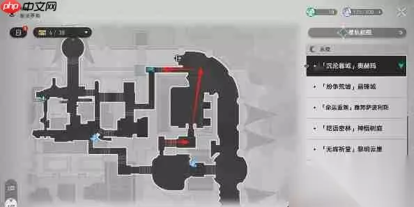 二、「沉沦暮城」奥赫玛:8个,主线任务完成后,地图多数区域尚未解锁,接下来我将按照开荒顺序提供寻路指引。 1号:传送至【喑声长厅】锚点,按照以下路径就能获取【真言狮口】。