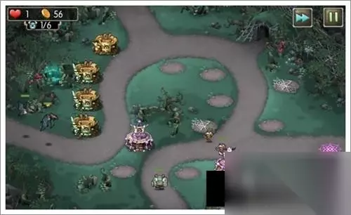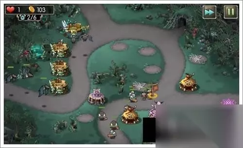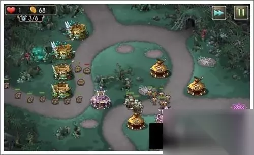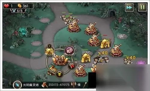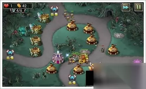 1、开局如下,右侧3个2阶箭塔1个初级箭塔。下路1个2阶法师塔1个3阶法师塔。出怪后将右侧的箭塔升到2阶,同时下路放一个勇士塔;