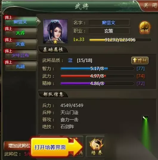 5、这样就完成了一次武将培养的操作。