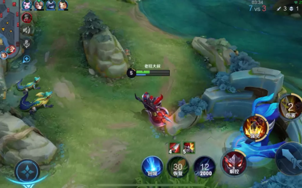 这是《王者荣耀》的搞笑对局片段,玩家操控的英雄带着蓝buff“离家出走”,在野区和河道来回跑动,队友发出集合、撤退等信号,场面十分滑稽。
