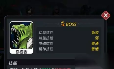 噬咬:对敌方造成3263点动能伤害,并吸取100%的生命值。 寄生:寄生在目标身体上,每秒吸收10%的生命,并使其速度降低20%,该技能命中极高。 抓取:在开局时释放,对敌方造成3455点动能伤害,并将敌人最后一个单位拉拽到最前方,并附加永久标记,增加其受到的所有伤害10%,若对方有单位存在标记,则不会使用该技能,该技能命中极高,同时给自己附加持续10秒的免伤护盾,减少80%受到的伤害。 腐蚀:吐出强腐蚀溶液,并腐蚀其装甲,使其受到的动能伤害增加10%,持续30秒,腐蚀状态最多叠加5层。 尖刺:将前肢插入地面,再破土而出,对所有敌方造成4798点动能伤害,并吸取50%的生命值。免疫寄生(被动):寄生状态无法作用于该单位。 平民攻略:平民攻略就是好装备给奶妈穿保住她,害羞转的毒奶,主角用减伤技能,云雀只是穿了闪避用来吃boss的攻击和技能替其他角色分担压力,最后直到吧boss的蓝耗光,基本就没有威胁了。 克制攻略:工程师给云雀上火buff,反正我云雀一刀下去一万八或者一个嘲讽一个火法一个奶