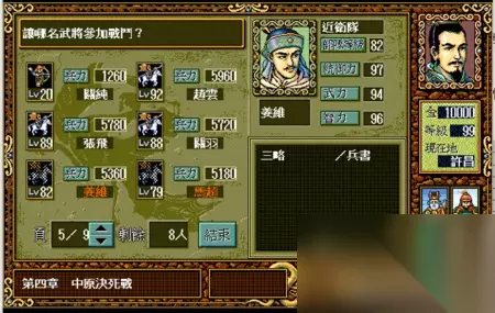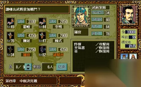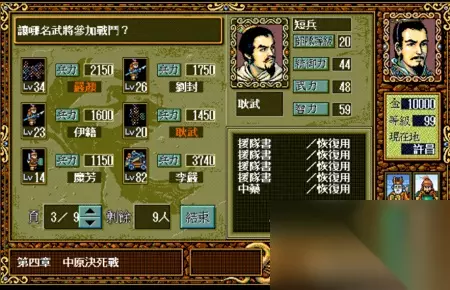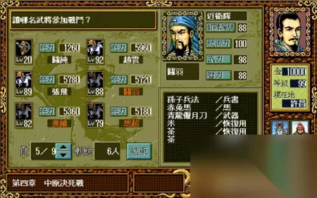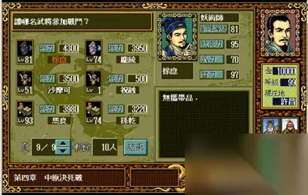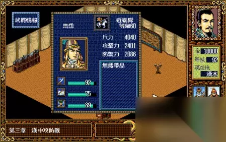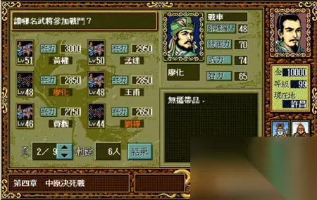 总而言之,大家对于这款游戏的热情可谓是持之以恒,几十年不变。 但是大家之前的乐趣,基本都体现在如何走位,如何练级以及如何在战场上计算好每次行动了。 事实上,三国志英杰传里还有一个非常重要的策略选择,那就是战前选择武将搭配。 因为英杰传里的每场战斗,能上场的武将数量都是有限制的。 从前期的5~8人,到大后期的最多15人。每场战斗之前,我们都需要在武将选择界面里,选择本场战斗需要上阵的人都是谁。 但是玩到决战前,我方阵容中最多能有多少位武将可以上阵呢? 答案是50位。 所以,如何从50名武将中选择出最适合的15个人,其实也是检验玩家游戏水平和认知的一个标准。 有些武将属性高,但是培养机会少;有些武将属性低但是能一直跟着; 有些武将很强,但是同职业比他更强的有很多;有些武将虽然不厉害,但是特定的属性搭配特定的职业,让他在战场上可以发挥倍增的作用。 那么,要如何选择参战的武将呢? 我们不妨把这五十位武将都列举出来,让大家看看哪些人可以用,那些人其实不合适吧。 特别说明:因为图示选用的是MOD版本,所以属性和列表不对应之处大家可以忽略。 1 排名41~50的武将:平均属性在50点以下,除了特定角色外,基本上都只是蹲墙角或者只能在特定关卡出现一次,然后就再也看不到的垃圾武将。