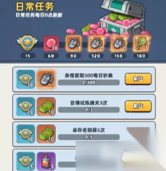 大家在游戏里一定要去做每日的日常任务,大部分玩家一上线就先把日常清理掉,只要把活跃度拉满,就可以拿到全部的奖励。把基础的180活跃度做完之后就可以获得钻石,钻石在游戏里是非常关键的货币,很多常用的礼包都是用它来买的。 日常任务里还会给士兵识别牌,这个道具在幸存者突破时会用掉很多,平时多攒一些,后面就不会太缺了。另外还有决斗凭证,等大家解锁完竞技场之后,每次进入都要消耗挑战券,凭证用的越多,后期每天领到的竞技场奖励也就更高。
