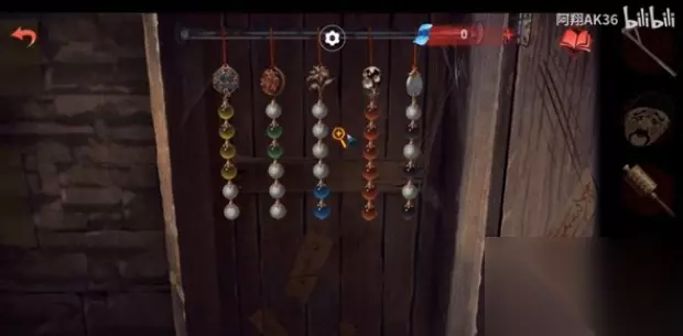 4、等待男主解谜之后出现新的场景,到右侧场景的位置,先把左侧扇子要按照正确顺序排列(线索在男主那边可以拿到的),之后在右侧拿到拐杖;