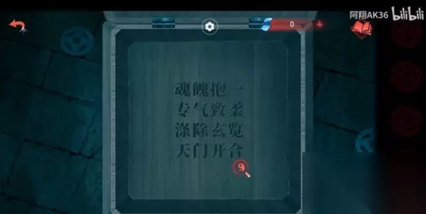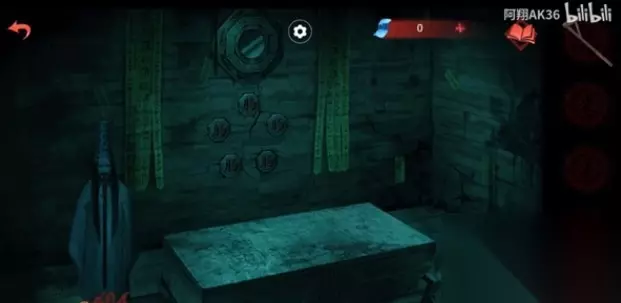 8、之后点击墙上的解密,点击成下图这样,之后中间会有一道光照进石床(光是男主那边的),光中间还有提示;