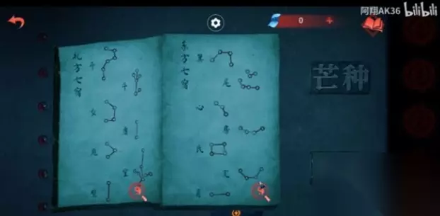 12、然后将获取的镜子放在上面的位置,会照出光,等女主将石床打开,根据男女主两本书的线索来调整光照的角度(就是镜子上的日期对应的图案是哪个节气的字,就点亮哪个);