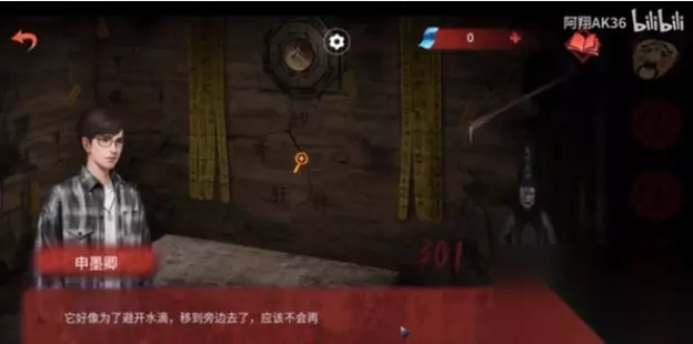 2、然后点击左侧门,根据获取的线索和男主一起解谜即可打开门,门后边左侧有一本书,其中是黑无常害怕水的线索;