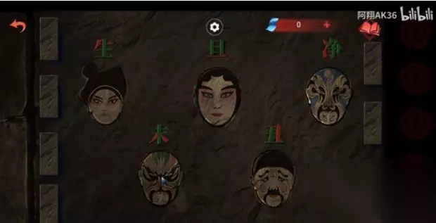 3、然后点击左侧拿到脸谱,再点击右侧的哪些牌子,这些牌子的顺序,就是女主那边地上小盒子里的四行字,按照这个顺序排列即可;