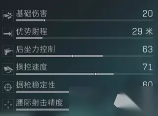 在输出能力方面M4A1在第一段射程内出了爆头以外的伤害都是20点,爆头伤害为38点,综合来看它的TTK是300ms。在爆头收益方面在第一段射程内M4A1需要爆头两枪才能对TTK产生影响,可以将TTK压缩到225ms。 配装思路