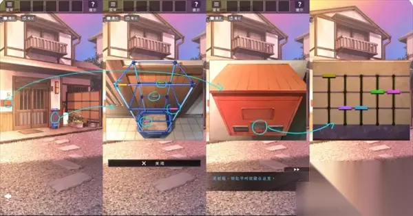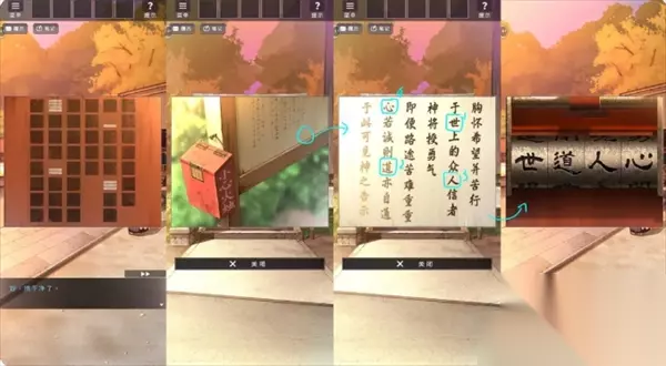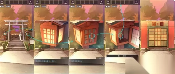 依照提示查看左右两边的灯笼,在右侧灯笼里取得蜡烛,并根据灯笼图案叠加解开小箱子。
